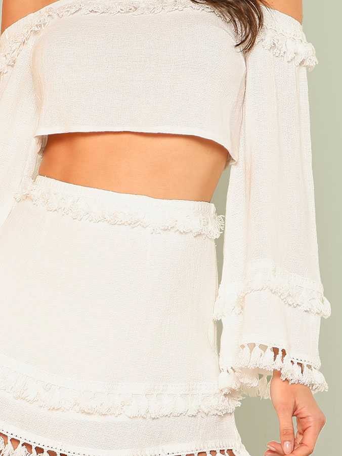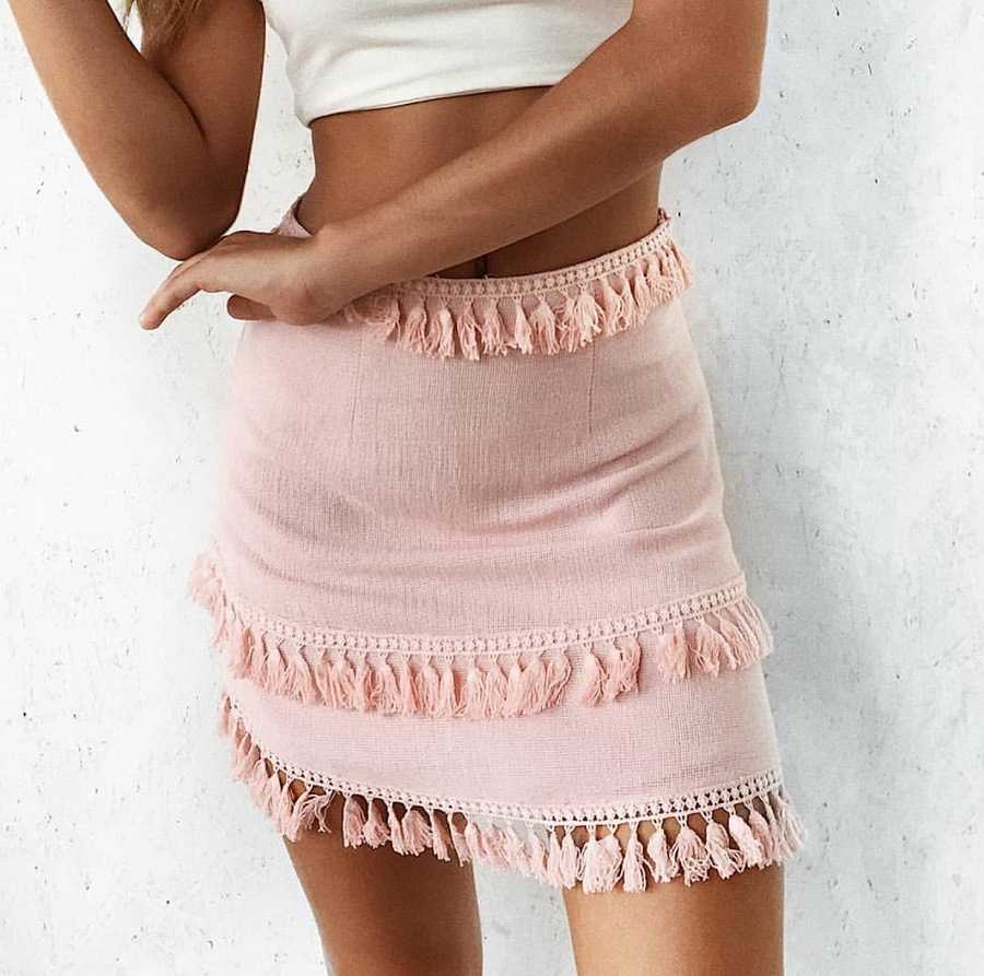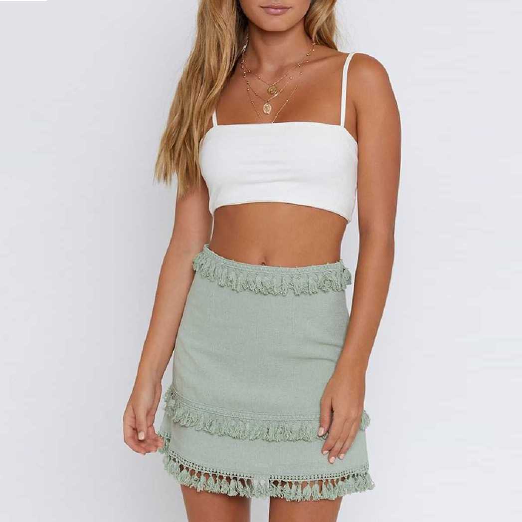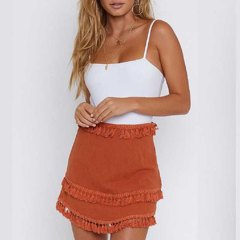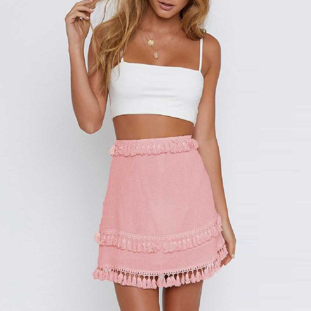 Linen Cotton Boho Chic Layered Tassels High Waist Pom Poms Mini Skirts