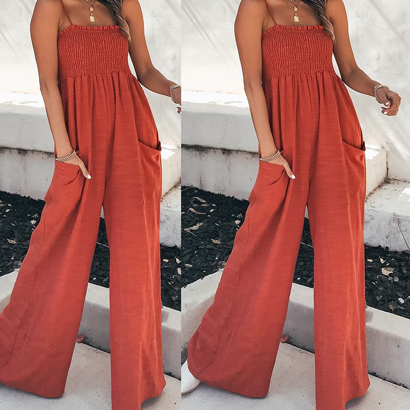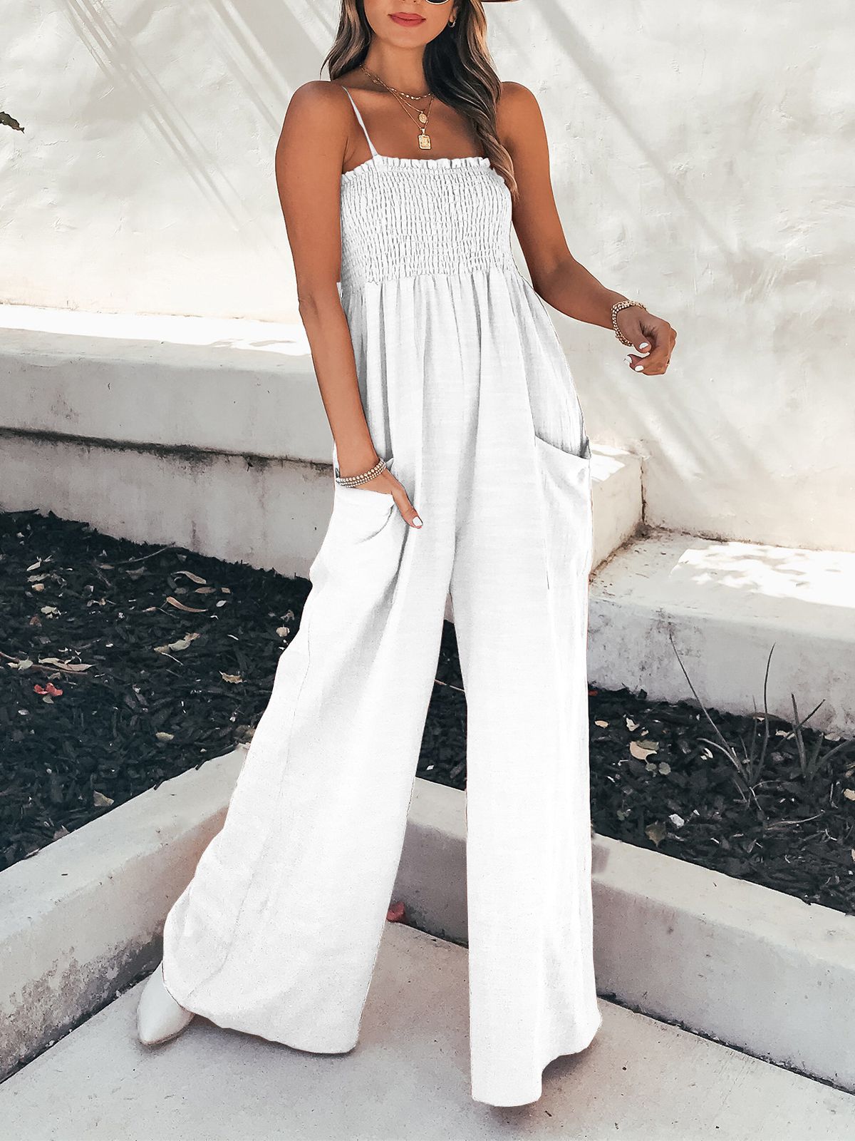 Spaghetti Strap Ruffle Trimmed Smocked Bandeau Palazzo Pant Jumpsuit quantity